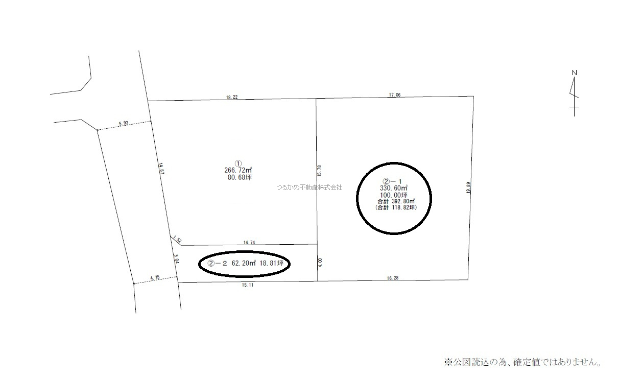 | 特色 | 建築条件なし、公営水道、浄化槽、側溝、プロパンガス、農振除外申請要す、農地転用許可要す、開発許可要す、100坪以上 |